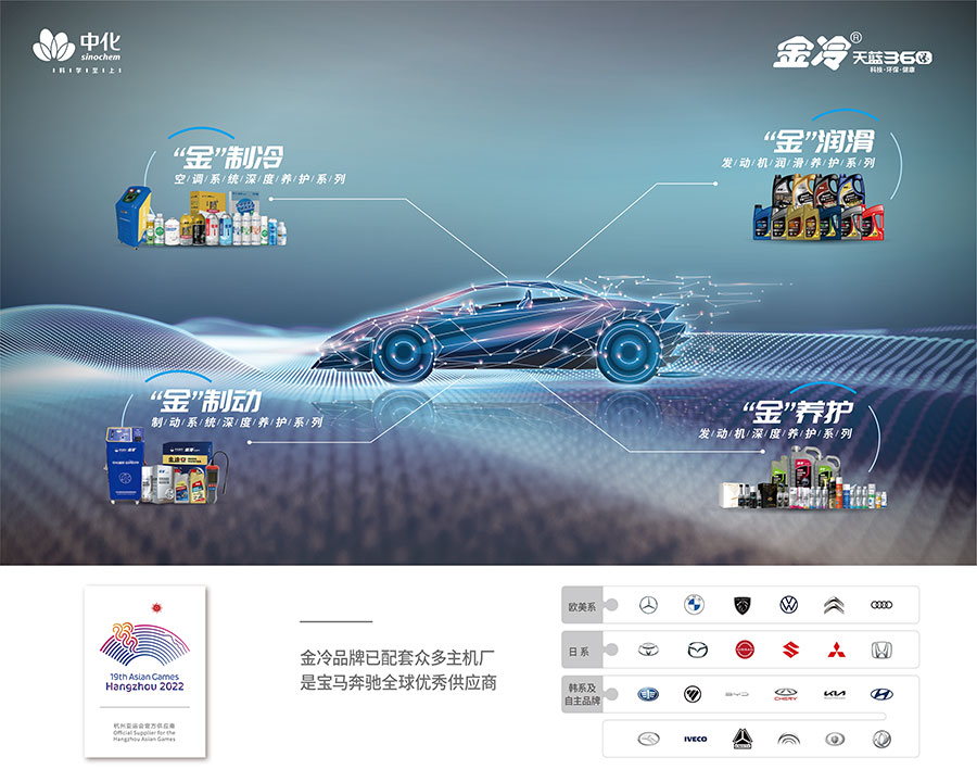 西安中藍金冷化工新材料有限公司是中化藍天集團有限公司“科學至上 創(chuàng)新驅動”核心價值理念下,成立的汽車后市場服務與創(chuàng)新平臺。西安中藍金冷以“金冷”品牌相關產品為基礎,向用戶提供涵蓋了汽車冷暖系統(tǒng)養(yǎng)護、發(fā)動機潤滑、車內健康凈化、全車深度養(yǎng)護等產品與服務綜合解決方案,一體化汽車化學品綜合服務商。
