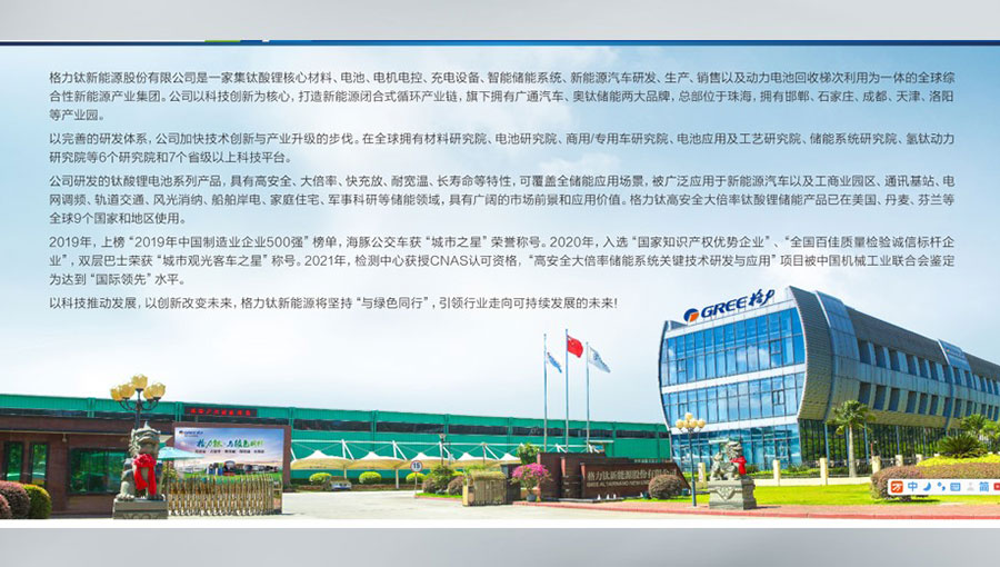 格力鈦新能源股份有限公司是一家集鈦酸鋰核心材料、電池、電機電控、充電設(shè)備、智能儲能系統(tǒng)、新能源汽車研發(fā)、生產(chǎn)、銷售以及動力電池回收梯次利用為一體的全球綜合性新能源產(chǎn)業(yè)集團。格力鈦新能源以科技創(chuàng)新為核心,打造新能源閉合式循環(huán)產(chǎn)業(yè)鏈,旗下?lián)碛袕V通汽車、奧鈦儲能兩大品牌,總部位于珠海,擁有邯鄲、石家莊、成都、天津、洛陽等產(chǎn)業(yè)園。