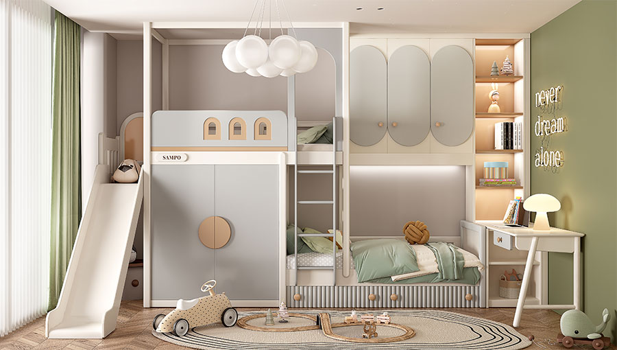松堡王國圍繞孩子成長居家生活四大基礎(chǔ)功能:學(xué)習(xí)區(qū)、收納區(qū)、娛樂區(qū)、睡眠區(qū),深度交合孩子成長方式,以美學(xué)設(shè)計(jì)、親子陪伴、趣味模塊為新空間設(shè)計(jì)概念,正向引導(dǎo)孩子建立良好生活習(xí)慣,形成成長生活秩序感,用愛為孩子打造有趣的成長空間。