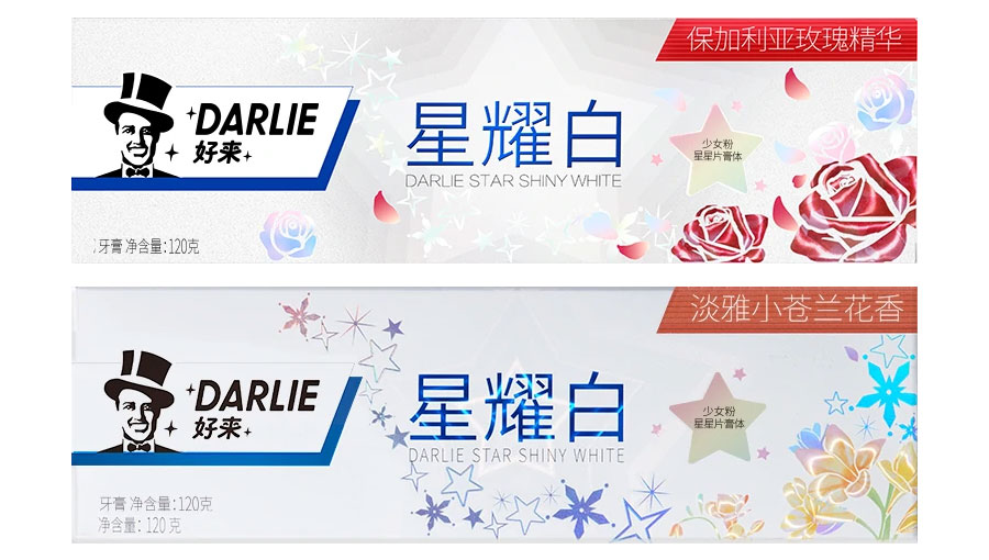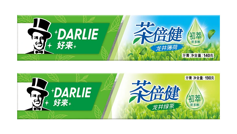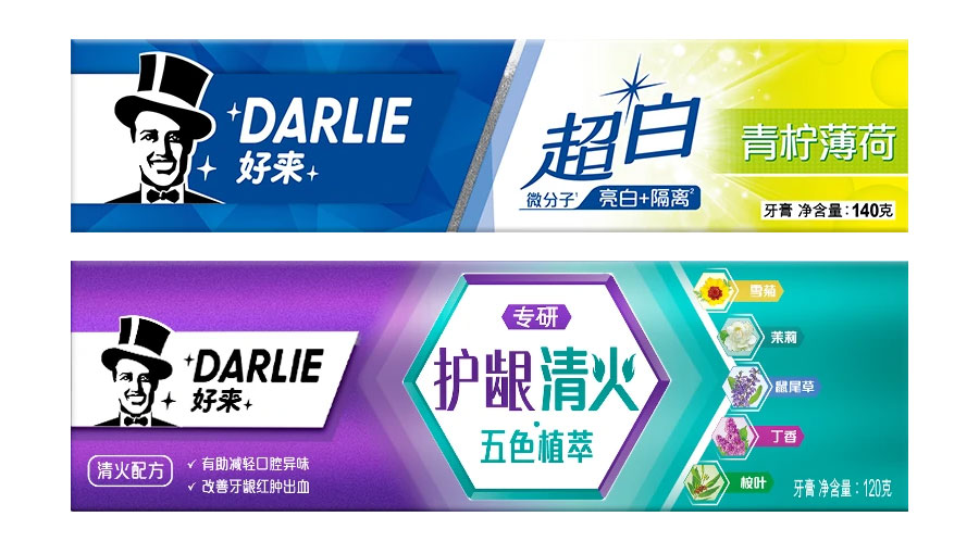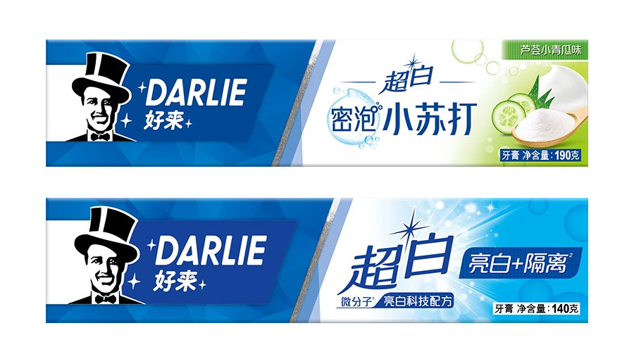 目前DARLIE好來牙膏共有數(shù)十個(gè)品種、多種規(guī)格(18g-250g),其中銷往中國大陸市場包括經(jīng)典的雙重薄荷系列、茶倍健系列、超白系列、專研護(hù)齦系列、抗敏感系列、透心爽系列,兒童牙膏系列及新增了白.酵素系列和星耀白系列等20個(gè)品種,另外還有多個(gè)品種同時(shí)銷往新加坡、馬來西亞、泰國、中國香港和中國臺灣等市場。