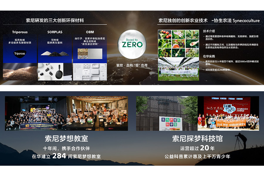 在發(fā)展各項(xiàng)業(yè)務(wù)的同時(shí),索尼矢志不渝履行對(duì)地球的“責(zé)任”,并通過(guò)技術(shù)和業(yè)務(wù)為地球做“貢獻(xiàn)”。在“走向零負(fù)荷”的環(huán)境目標(biāo)指導(dǎo)下,在中國(guó),索尼已從2020-2022財(cái)年連續(xù)實(shí)現(xiàn)100%可再生能源用電,并將多樣創(chuàng)新的環(huán)保技術(shù)成果引入中國(guó):包括將多樣植物高密度混種以回歸自然生態(tài)的“協(xié)生農(nóng)法”,索尼獨(dú)自開發(fā)的三大創(chuàng)新環(huán)保材料SORPLARSTM,TriporousTM,OBM等等。