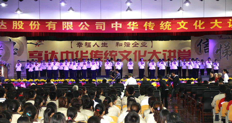 亨達(dá)股份在多年的企業(yè)發(fā)展中,逐步形成了以中華傳統(tǒng)文化育人、以西方科學(xué)管理做事的二元文化格局,將道德教育與現(xiàn)代管理有機(jī)融合,形成具有中國特色的企業(yè)文化。其自創(chuàng)業(yè)之初一脈相承的“家文化”更是將亨達(dá)股份“孝敬仁愛、誠實(shí)守信、文明禮儀”的企業(yè)精神精彩演繹。亨達(dá)“家文化”,其內(nèi)涵突出了一個(gè)“家”字,而“家”在中華傳統(tǒng)文化5000年文明傳承最小單位。亨達(dá)的“家文化”具有三個(gè)層次:員工幸福之家、企業(yè)和諧之家、祖國昌盛之家。建立在“家文化”基礎(chǔ)上的亨達(dá)企業(yè)文化,秉承的是具有中國特色的“人性化管理”。