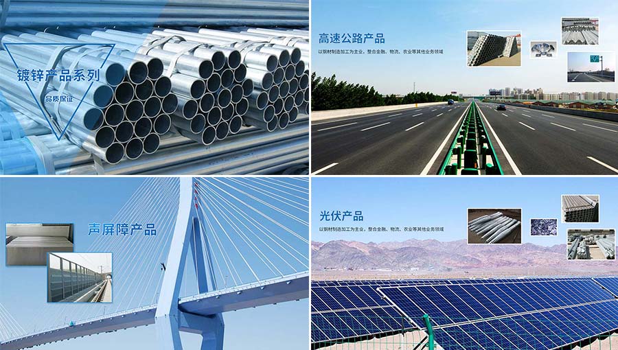 集團下屬有各類焊管、螺旋管制造、熱電鍍鋅、噴塑浸塑、納米加工、公路安全設(shè)施材料制造、鐵路聲屏障制造、大型鑄鍛件制造、鋼板樁制造、電力設(shè)施、新能源等十多個企業(yè)和二十多個分公司。專業(yè)生產(chǎn)、銷售4分至8寸高頻焊接鋼管、219-2540規(guī)格的螺旋鋼管、石油天然氣管、厚壁管、高速公路安全設(shè)施產(chǎn)品、鐵路聲屏障產(chǎn)品,電力鐵塔、光伏產(chǎn)品,各種規(guī)格的鋼管、扁鐵、圓鋼、角鋼及鐵制大小件的生產(chǎn)和熱鍍鋅電鍍鋅加工、靜電噴塑和納米加工。是以鋼鐵制作加工為主業(yè),集物流服務(wù)、現(xiàn)代旅游農(nóng)業(yè)、新能源配套、金融業(yè)等行業(yè)為一體的多功能跨領(lǐng)域的大型集團。產(chǎn)品成功銷往美洲、歐洲、中東、東南亞等國家和地區(qū),與美國、印度、荷蘭、澳大利亞、阿聯(lián)酋、韓國等國客商建立了業(yè)務(wù)合作關(guān)系。