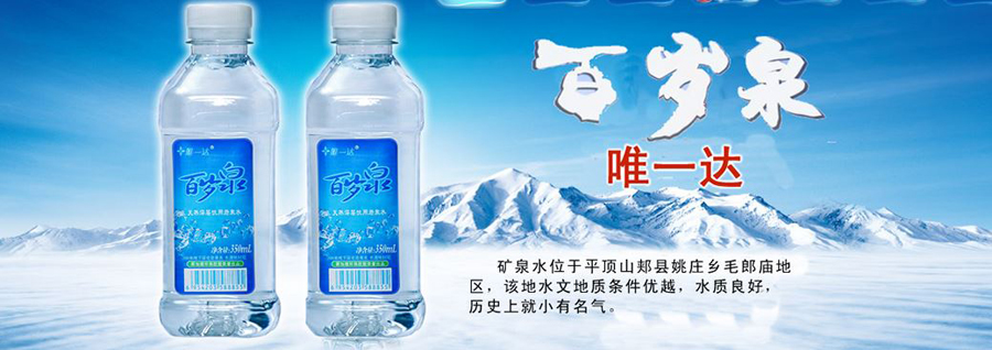 水是生命之源,科學(xué)飲水是健康第一要素。為滿足人們不斷上升的礦泉水質(zhì)量和品位的要求,湖南百歲泉飲品有限公司在全國(guó)各地多年研究、考察,終于在有幾千年文化歷史的茶馬古道——郟縣毛郎廟,找到了適合中國(guó)人體質(zhì)特點(diǎn)的健康、優(yōu)質(zhì)礦泉水——“唯一達(dá)百歲泉”。目前,湖南百歲泉飲品有限公司全權(quán)負(fù)責(zé)“唯一達(dá)百歲泉”中國(guó)區(qū)總經(jīng)銷權(quán),得到郟縣政府大力支持。