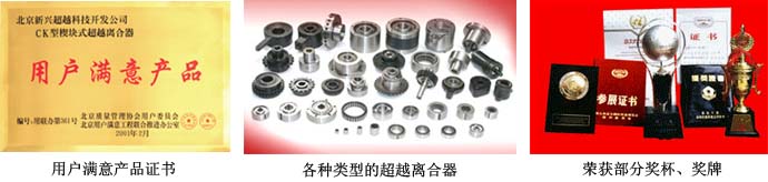 CK型超越離合器2002年榮獲中國機械通用零部件行業(yè)新產(chǎn)品“優(yōu)秀獎”;2003年中國質(zhì)量檢驗協(xié)會列為“全國質(zhì)量信得過產(chǎn)品”;2004年5月隨中國發(fā)明協(xié)會參展團去法國參加“第95屆巴黎國際發(fā)明展覽會”,榮獲“列賓國際發(fā)明獎”;同年10月去韓國漢城參加“2004年國際發(fā)明大會”,榮獲“金獎”;2005年9月在北京參加“第十五屆全國發(fā)明展覽會”,榮獲精品“金獎”。2004年完成超越離合器產(chǎn)值480萬,銷售額460萬元。