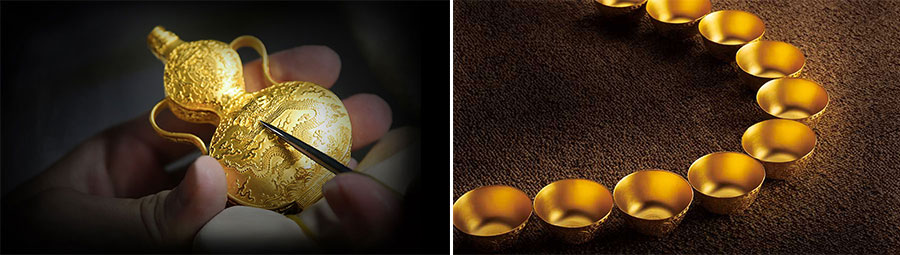 國金黃金自涉足藝術(shù)黃金領(lǐng)域之初就努力踐行“非凡技藝、完美品質(zhì)”的產(chǎn)品理念,以客戶體驗為中心圍繞傳承和使用理念設(shè)計和策劃產(chǎn)品。逐步建成了以傳家系列、平安系列、婚慶系列、生肖系列及國金定制五大系列組成的產(chǎn)品細分體系。其中,從文化層面包含了酒文化、茶文化、福文化、佛文化、喜文化、生肖文化、節(jié)慶文化、紀念文化等題材;從功能上又包含了食器、酒器、茶器、福器、玩器、合器等實用器型,能滿足各類客戶的多元化需求。此外,擁有眾多專業(yè)設(shè)計人才的國金定制顧問團隊,又能為個人客戶和企業(yè)客戶提供一對一的專業(yè)定制服務(wù),幫助每一位客戶實現(xiàn)黃金夢想,造就品質(zhì)生活。