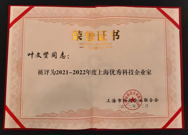12月8日,上??沦惖滤辜用朗图瘓F(tuán)有限公司董事長葉文賢被授予“上海市優(yōu)秀科技企業(yè)家”稱號。這是在全國疫情防控新形勢下,對葉文賢同志直面經(jīng)濟(jì)大環(huán)境的挑戰(zhàn),堅持科技創(chuàng)新、堅持實業(yè)興企、堅持多品牌運(yùn)作取得顯著成效的肯定。