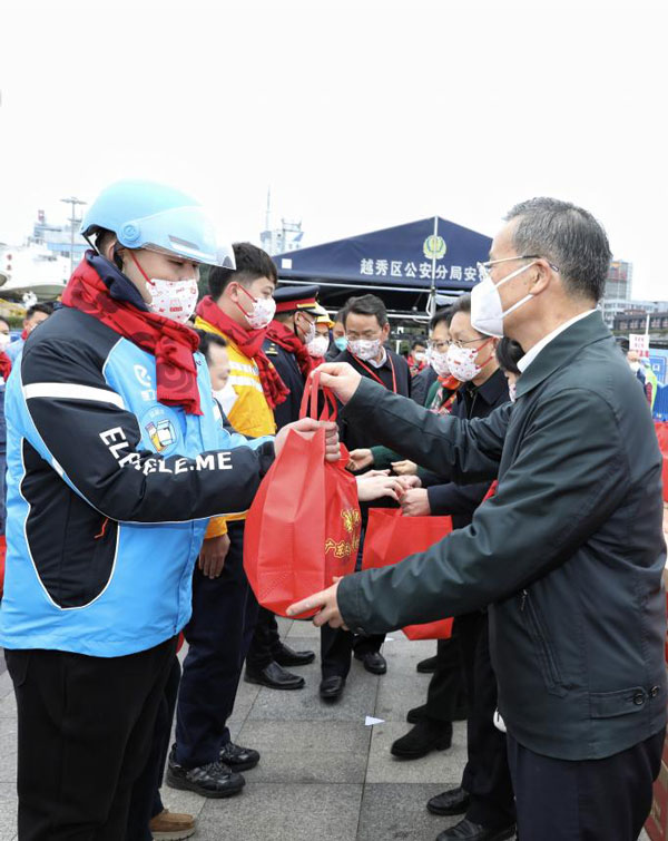 省人大常委會(huì)黨組成員、省總工會(huì)主席呂業(yè)升出席慰問(wèn)活動(dòng)并向廣大勞動(dòng)者致以親切問(wèn)候和新春祝福。省總工會(huì)黨組書(shū)記、常務(wù)副主席陳偉東,省總工會(huì)黨組成員、副主席杜玲,省總工會(huì)副主席(兼職)、廣州市人大常委會(huì)副主任、市總工會(huì)黨組書(shū)記、主席唐航浩等代表廣東工會(huì)向慰問(wèn)現(xiàn)場(chǎng)的網(wǎng)約配送員、環(huán)衛(wèi)工人、建筑工人以及保障春運(yùn)的保安員、醫(yī)務(wù)人員、公安干警、鐵路客運(yùn)服務(wù)人員等職工代表送上新春慰問(wèn)大禮包。廣州市總工會(huì)及越秀區(qū)總工會(huì)相關(guān)領(lǐng)導(dǎo)參加了慰問(wèn)活動(dòng)。