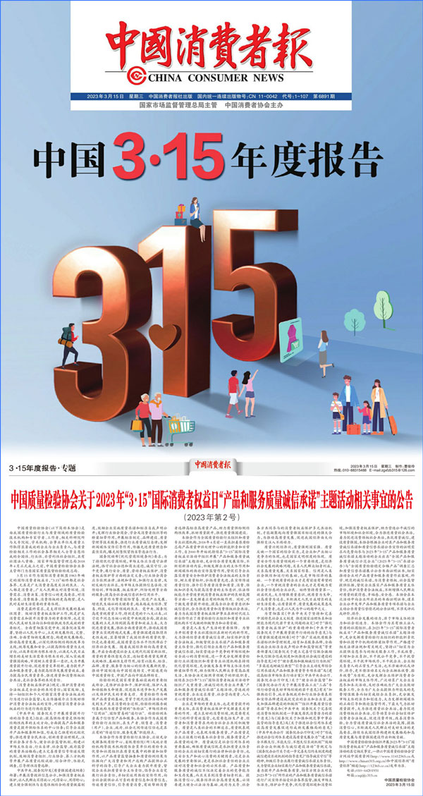 中國質量檢驗協(xié)會關于2023年“3·15”國際消費者權益日