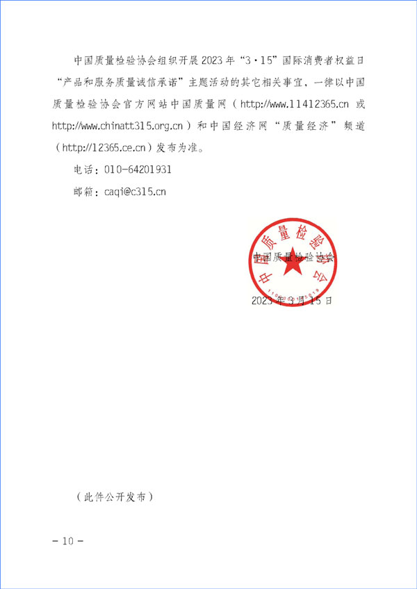 中國質量檢驗協(xié)會組織開展2023年“3·15”國際消費者權益日“產品和服務質量誠信承諾”主題活動的其它相關事宜,一律以中國質量檢驗協(xié)會官方網(wǎng)站中國質量網(wǎng)(http://www.11412365.cn或http://www.chinatt315.org.cn)和中國經(jīng)濟網(wǎng)“質量經(jīng)濟”頻道(http://12365.ce.cn)發(fā)布為準。