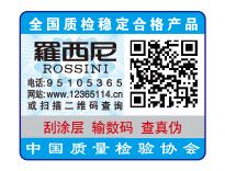 【“全國質(zhì)檢穩(wěn)定合格產(chǎn)品”專用標(biāo)識(shí)】具有專屬的知識(shí)產(chǎn)權(quán)(經(jīng)中國版權(quán)保護(hù)中心審核,國家版權(quán)局對(duì)“全國質(zhì)檢穩(wěn)定合格產(chǎn)品”專用標(biāo)識(shí)頒發(fā)了《作品登記證書》,登記號(hào):國作登字-2015-L-00188456),基本規(guī)格為5cm2,集電話電碼防偽查詢、二維碼在線掃描、微信驗(yàn)證等多種功能于一體,綜合運(yùn)用了紐索幣紋、微縮文字、熒光激發(fā)油墨等多種防偽技術(shù);專用標(biāo)識(shí)加貼在產(chǎn)品或包裝上,消費(fèi)者只需要用座機(jī)(手機(jī))電話撥打全國范圍內(nèi)都不需要加區(qū)號(hào)的特服號(hào)碼95105365或使用手機(jī)掃描二維碼或登陸網(wǎng)站(http://www.12365114.cn)就可直接查詢驗(yàn)證加貼專用標(biāo)識(shí)的產(chǎn)品為第三方國家質(zhì)量專業(yè)機(jī)構(gòu)客觀、公正證明的全國質(zhì)量檢驗(yàn)穩(wěn)定合格產(chǎn)品,形成企業(yè)自己獨(dú)有的比較優(yōu)勢(shì),助力企業(yè)通過“質(zhì)量檢驗(yàn)”的比較優(yōu)勢(shì)去贏得消費(fèi)者更多的信任。